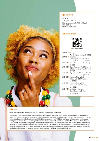 nachhaltiges Leben fördern. Für alle diese Angebote ist eine Anmeldung bei der VHS Dortmund erforderlich.