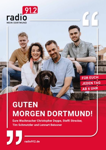 FÜR EUCH JEDEN TAG AB 6 UHR GUTEN MORGEN DORTMUND! Eure Wachmacher Christopher Deppe, Steffi Strecker, Tim Schmutzler und Lennart Beissner radio912.de