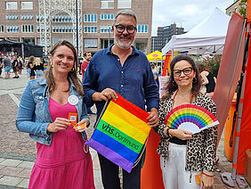 Am 16. August 2025 war die vhs. Dortmund erstmals mit einem eigenen Stand beim Christopher Street Day (CSD) auf dem Friedensplatz vertreten. Ein besonderer Moment war der Besuch von Oberbürgermeister Thomas Westphal an unserem Stand, der sich mit uns über die Bedeutung von Vielfalt, Toleranz und demokratischer Bildung austauschte.